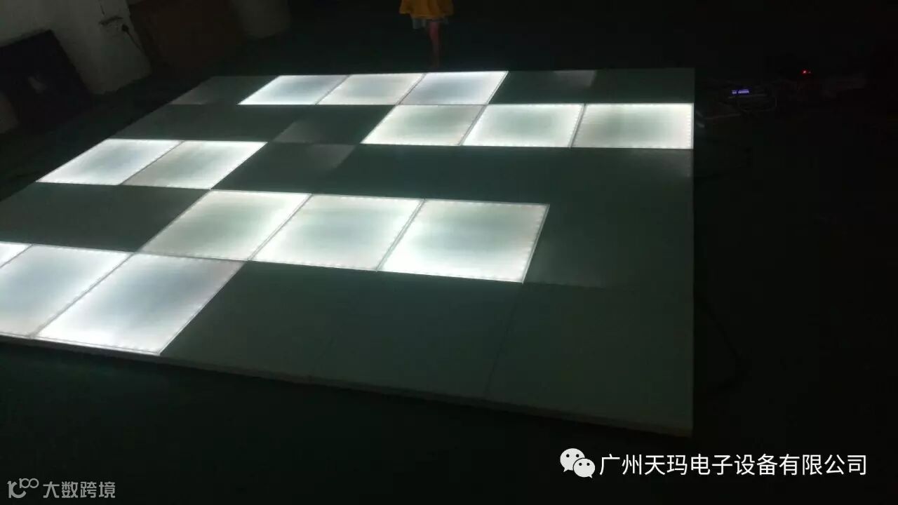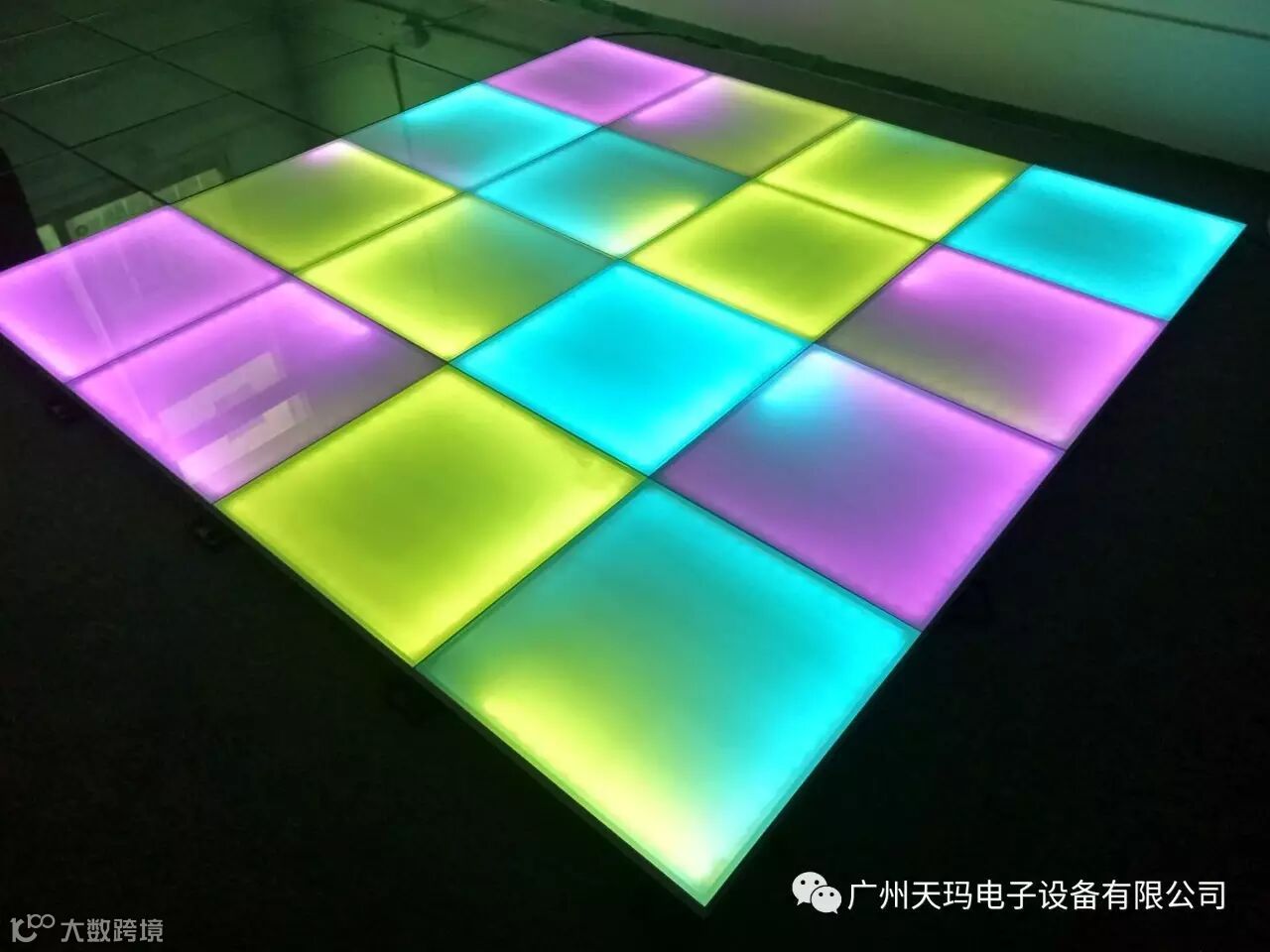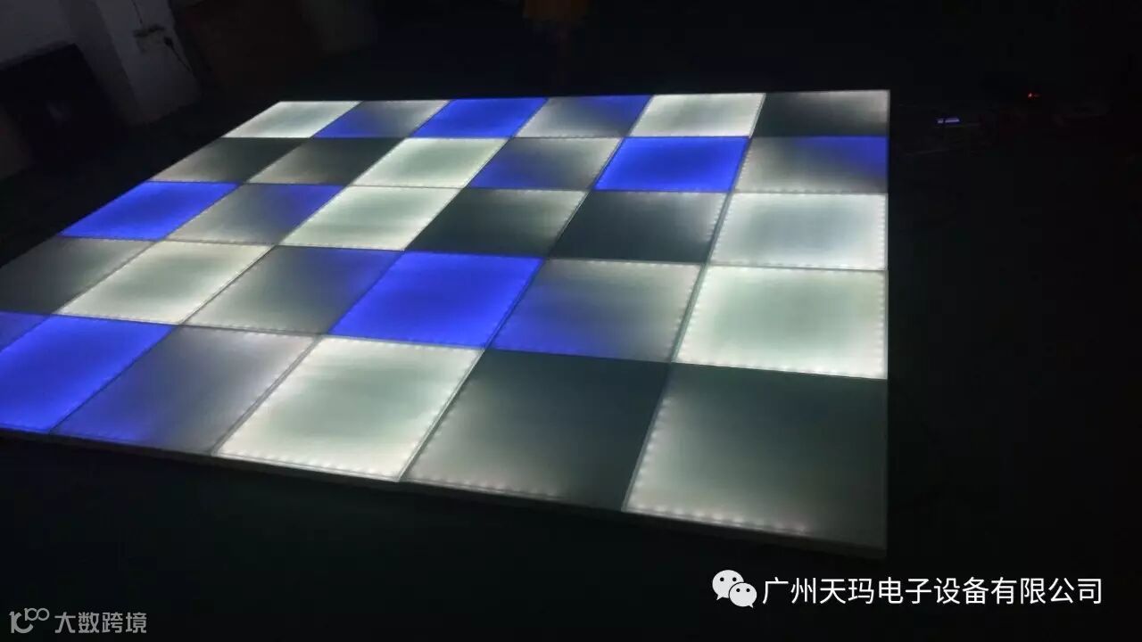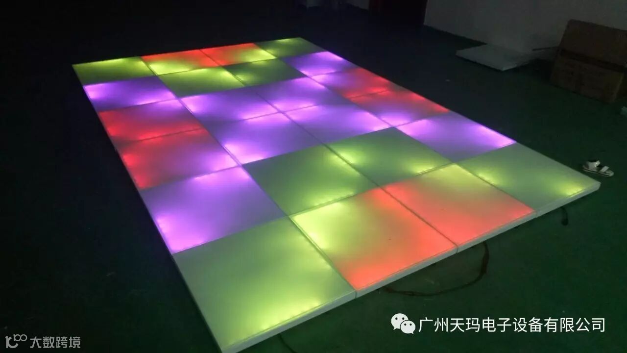 6. Water proof:IP55 7. Housing:Alluminium alloy 8. Surface Board:10mm Tempered glass 9.NW:9kg. 10.GW:9.5kg. 11.Packing Size: 560*560*180mm(Carton 1 in 1) 12.Base design:Portable handle + Bottom skid resistance+ hidden outlet cables. 13. Feature: RGB gradual change, Jump effect,Rotation effect, Rendering effect, Chase effect, Auto run, Sounds active,Type word