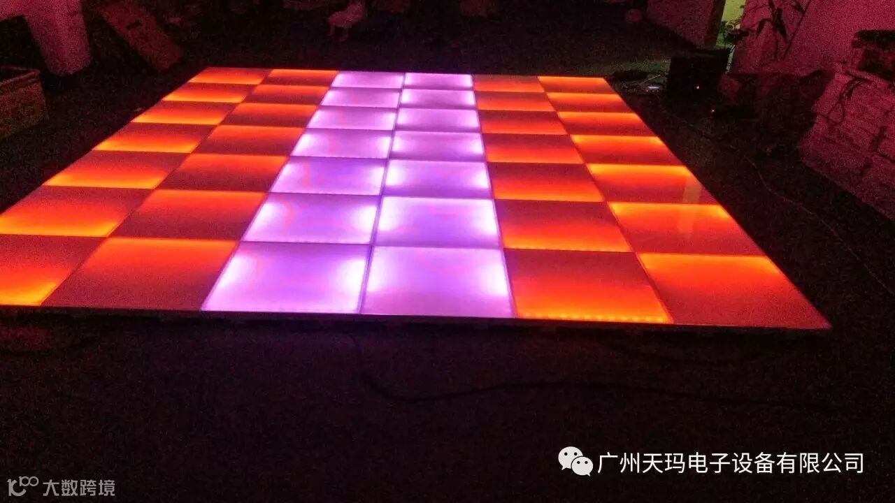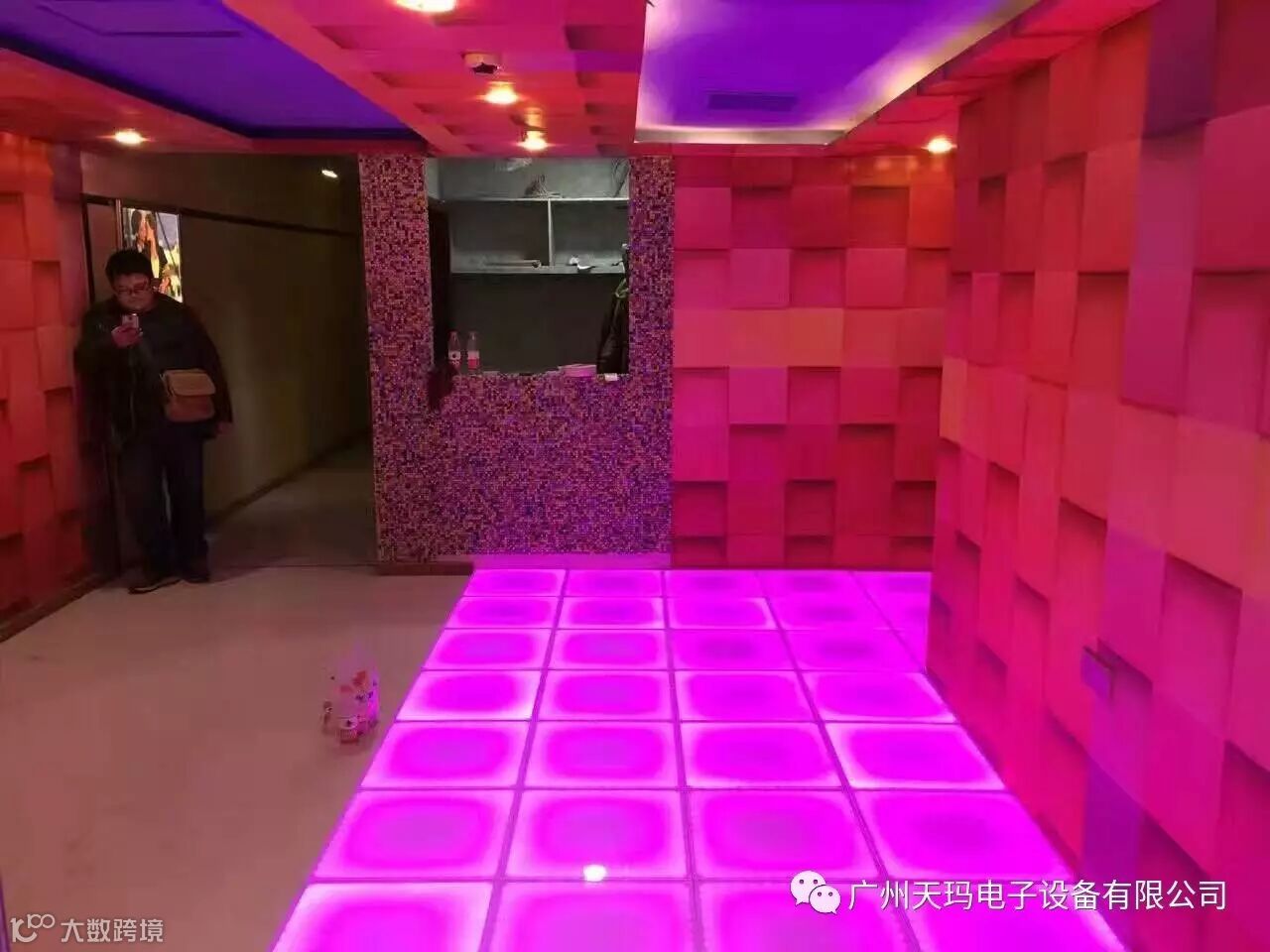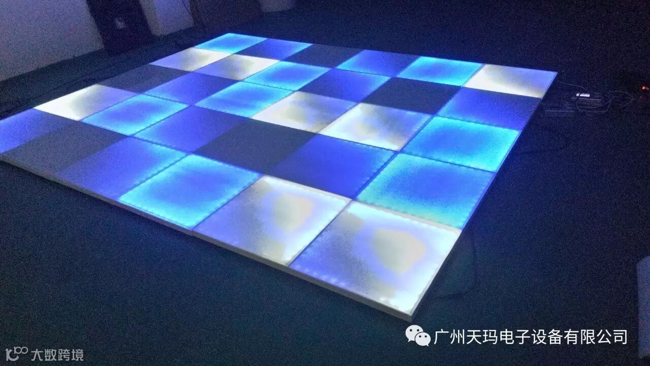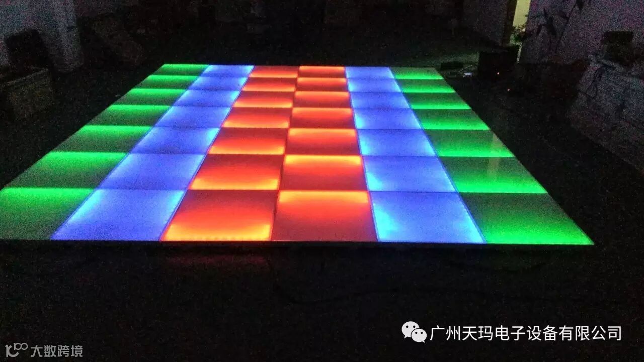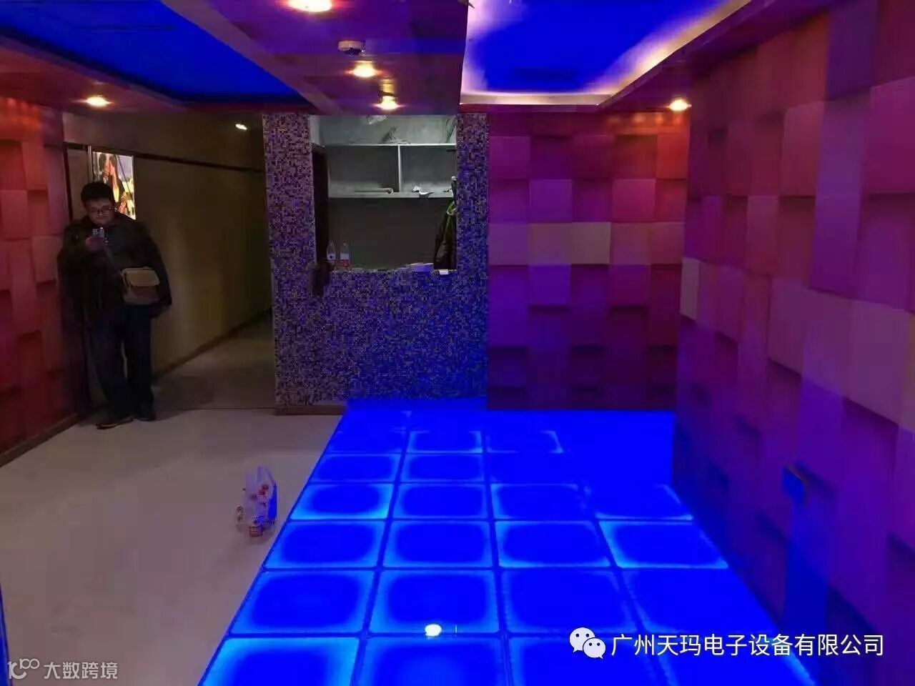 6. Water proof:IP55 7. Housing:Alluminium alloy 8. Surface Board:10mm Tempered glass 9.NW:9kg. 10.GW:9.5kg. 11.Packing Size: 560*560*180mm(Carton 1 in 1) 12.Base design:Portable handle + Bottom skid resistance+ hidden outlet cables. 13. Feature: RGB gradual change, Jump effect,Rotation effect, Rendering effect, Chase effect, Auto run, Sounds active,Type word