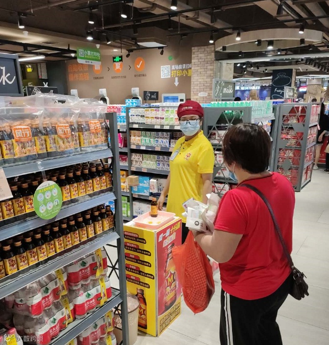 这时,可以看到在现场陆续有消费者在品尝了解M-150能量饮料,超市员工正认真卖力地为消费者介绍M-150以及推荐感兴趣的消费者进行试饮,还有很多消费者在旁边等候,仔细了解品尝。现场气氛非常热烈,一片和谐。