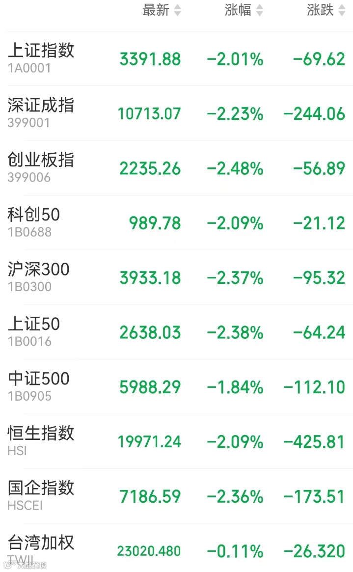 2、港股:香港恒生指数收跌2.09%报19971.24点,周涨0.53%;恒生科技指数跌2.63%,周涨0.33%;恒生国企指数跌2.36%,周涨0.7%。恒生行业指数全线下跌,原材料、大消费、内房、科技板块跌幅居前。大市成交1584.77亿港元,南向资金净买入143.06亿港元,盈富基金获净买入30.26亿港元居首,美团-W遭净卖出4.96亿港元最多。中国台湾加权指数收盘跌0.11%报23020.48点,上周累计跌0.75%。