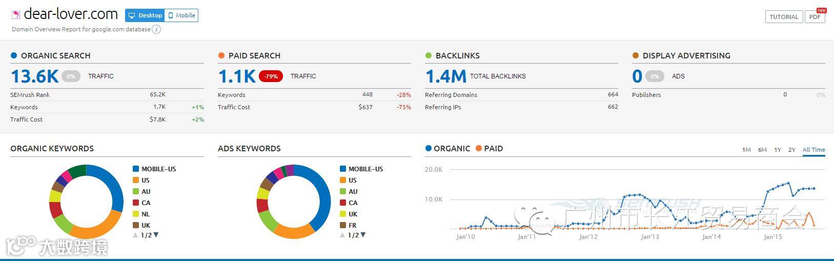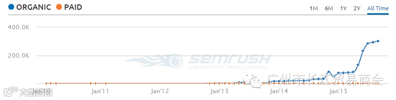 这个是wish的流量来源,其实搜索引擎的流量比社交的要高。再看看WISH的搜索流量