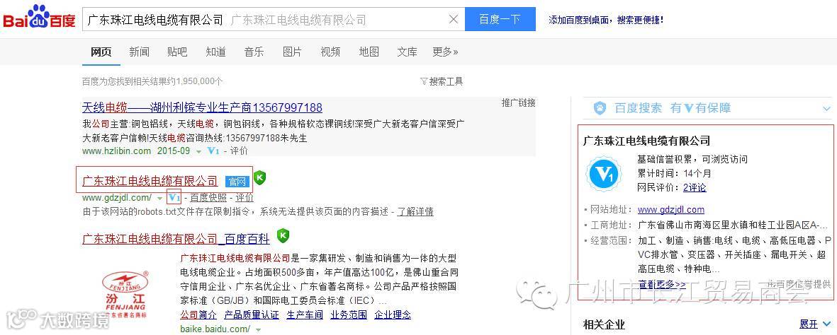 恭喜你答对一半 ,还有必须通过百度认证:V1可以申请搜索公司全称出现官网标志;V2可以开通三个关键词:公司全称+自定义两个名称(品牌名称或者公司简称)。