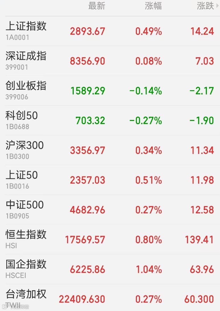 1、A股:A股三大指数冲高回落,沪指盘中收复2900点。中美金融工作组会议提及跨境支付和数据,跨境支付、数字货币板块冲高,东方通等多股20%涨停;金价再创新高,贵金属板块活跃;银行板块走强,工农中建交五大行齐创新高。新冠防治、AI眼镜、铜缆高速连接等板块回调。截至收盘,上证指数收涨0.49%报2893.67点,深证成指涨0.08%,创业板指跌0.14%,北证50跌1.07%,科创50跌0.27%,万得全A涨0.13%,万得A500涨0.34%。市场成交额5734.1亿元。