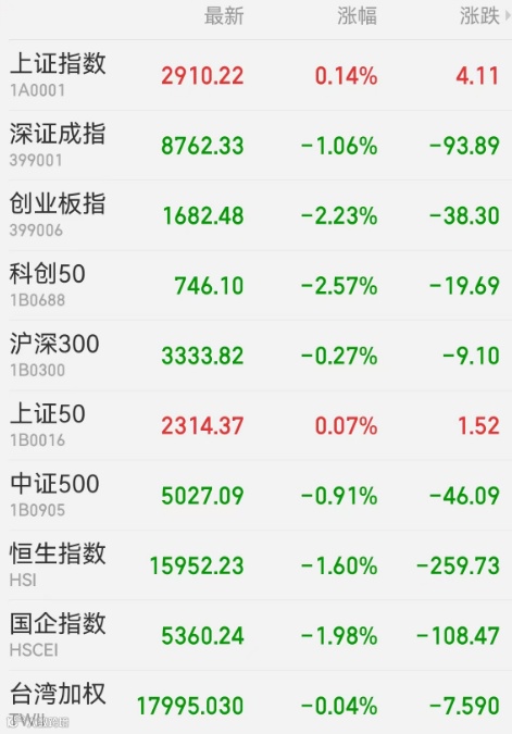 2、港股:香港恒生指数收跌1.60%报15952.23点,周涨4.20%;恒生科技指数跌3.75%,周涨1.81%;恒生国企指数跌1.98%,周涨4.54%。医药股领跌,科技股低迷,联想集团跌近10%,比亚迪电子跌逾7%。大市成交1316.24亿港元,南向资金净买入53.23亿港元,盈富基金获净买入38.68亿港元居首,腾讯控股遭净卖出2.81亿港元最多。中国台湾加权指数收跌0.04%,报17995.03点,周涨1.77%。