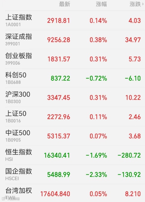 1、A股:周一A股三大指数全天缩量整理,北证50指数再度爆发,大涨超4%。汽车产业链反弹,一体化压铸方向领涨;虚拟现实、合成生物学、超导、机器人概念走强;海运股集体下挫,游戏股连续回调。截至收盘,上证指数涨0.14%,报2918.81点,深证成指涨0.38%,创业板指涨0.31%,科创50跌0.72%,北证50涨4.04%,万得全A涨0.11%,万得双创跌0.02%,万得微盘股指数跌1.23%。市场成交额6234.8亿元,刷新三个月新低。