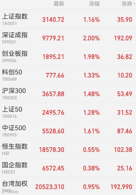 2、港股:香港恒生指数收涨0.55%报18578.30点,连涨10日;恒生科技指数涨0.92%,恒生国企指数涨0.38%。工业股、科技股涨幅居前,信义玻璃涨逾11%,理想汽车涨逾6%。大市成交1444.86亿港元,南向资金净买入50.86亿港元,盈富基金获净买入55.24亿港元居首,美团遭净卖出9.61亿港元最多。中国台湾加权指数收涨0.95%,报20523.31点。