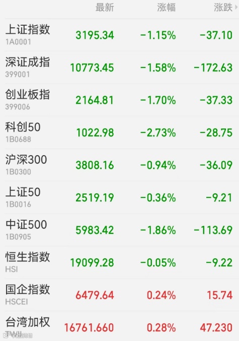 2、港股:港股早盘冲高回落,恒生指数收跌0.05%报19099.28点,恒生科技指数跌0.17%,恒生国企指数涨0.24%。大市成交1024.89亿港元,南向资金净卖出达81.3亿港元。医药、工业、科技板块跌幅居前,果链多数下跌,内房、能源股走强。中国台湾加权指数收盘涨0.28%。
