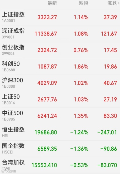 2、港股:香港恒生指数收跌1.18%,恒生科技指数跌1.63%,恒生国企指数跌1.36%,大市成交662.46亿港元。黄金板块获得青睐,招金矿业涨4.27%,中国黄金国际涨2.25%。受油价前日大跌影响,石油板块集体下挫,中国石油股份跌4.44%,中国海洋石油跌3.32%。博彩、半导体等前期热门板块多数下跌,美高梅中国跌8.74%,金沙中国有限公司跌4.94%,中芯国际跌3.11%。