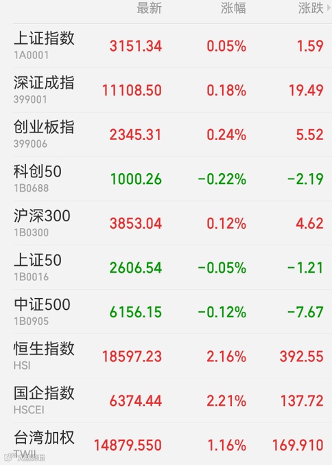 1、A股:A股全天窄幅整理,新能源车产业链全线反弹,电信、燃气板块走强,供销社概念活跃;海运、医药板块领跌;地产股冲高回落,午后出现多股炸板。截至收盘,上证指数涨0.05%报3151.34点,深证成指涨0.18%,创业板指涨0.24%,科创50指数跌0.22%,万得全A涨0.05%,万得双创跌0.14%。市场成交额9321.8亿元;MSCI半年度指数调整盘后生效,北向资金尾盘大幅进场扫货,实际净买入49.17亿元。