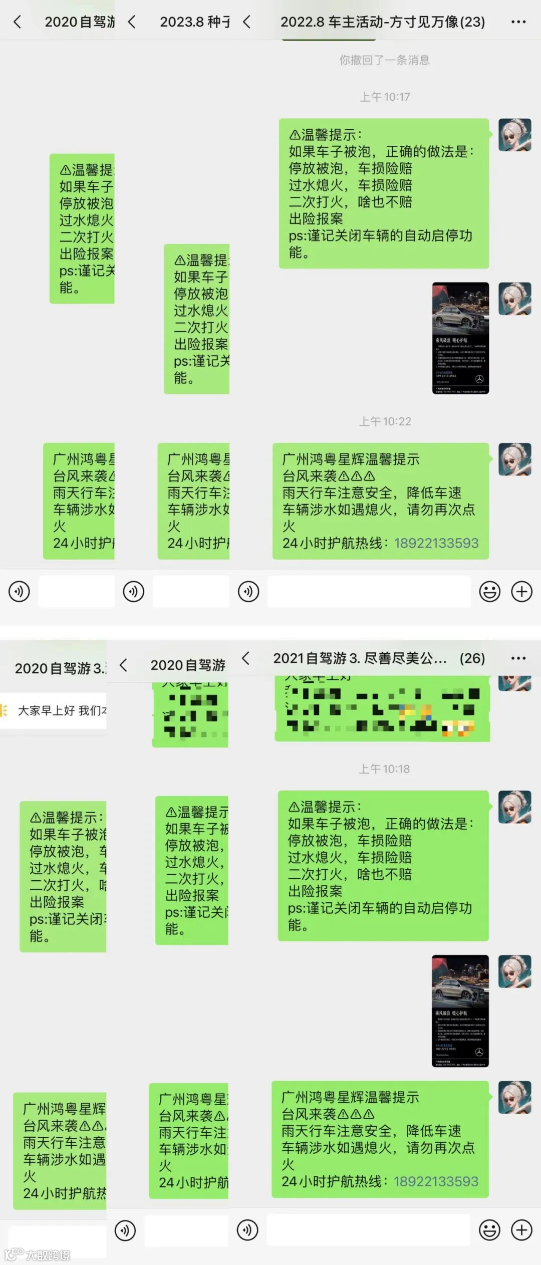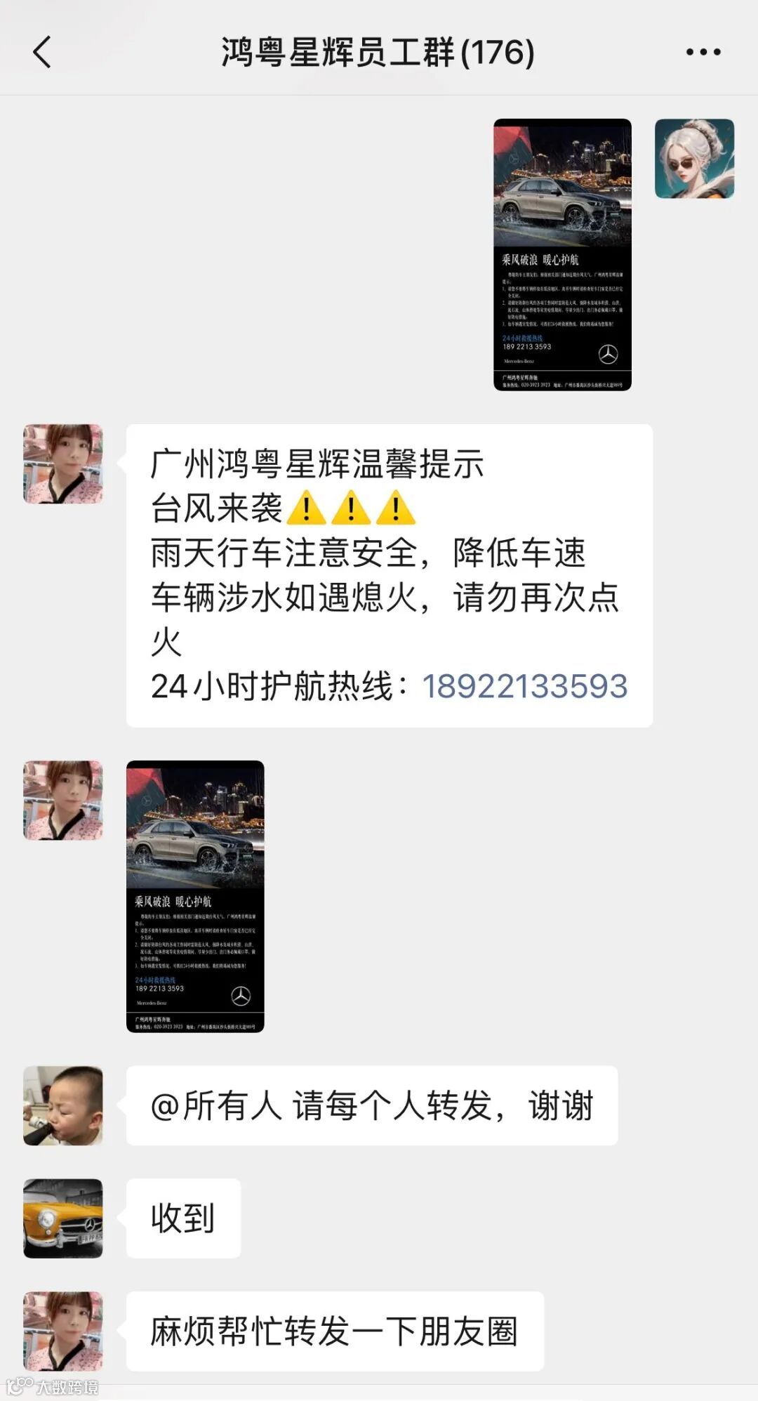 工作人员第一时间在各个车主群发布紧急注意事项告知,守护车主们的安全。