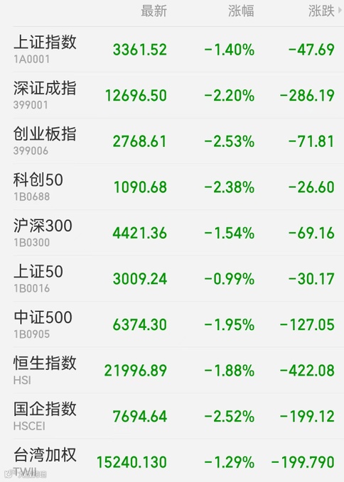 1、A股:沪深股指全线回调,近期热门股批量跌停,汽车板块高台跳水,市场资金撤离热门赛道,创业板指跌破2800点关口。截至收盘,上证指数跌1.4%报3361.52点,创业板指跌2.53%报2768.61点,深证成指跌2.2%报12696.5点;大市成交1.31万亿元。盘面上,汽车板块跌7%,长安汽车跌停且主力净流出超44亿元,北汽蓝谷、小康股份、广汽集团等同样封住跌停板;锂电、农业、光伏、军工、半导体、券商、稀土、风电、特高压、白酒等跌成一片。郁亮喊话房地产市场短期已触底,地产板块苏醒。