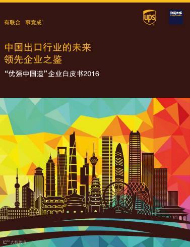 《“优强中国造”企业白皮书2016》基于UPS过去数十载与中国出口制造业密切合作的宝贵经验及千位中国出口制造企业高层决策者的深度访谈,触及行业前沿,洞察发展态势,为中国出口制造企业指引未来风向。