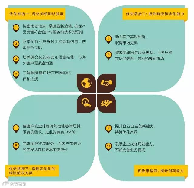 本次报告在2014年提出的引领中国出口制造企业改革四大优先举措的基础上,进一步深化了对这四大关键举措的解读: