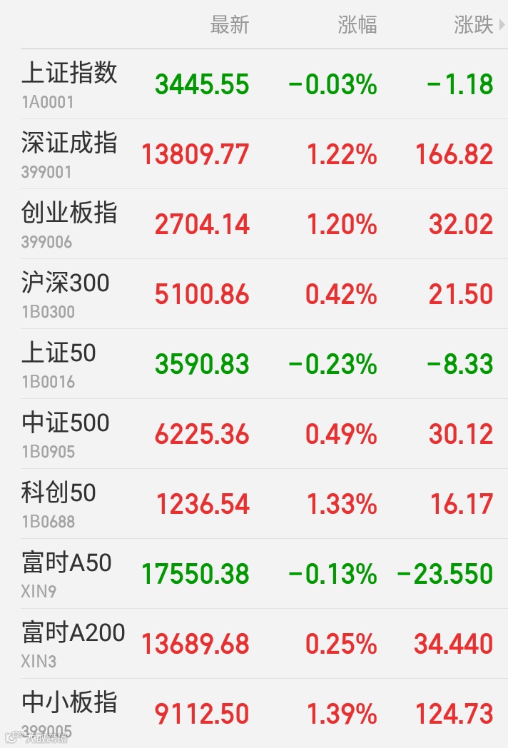 1、A股:A股宽幅震荡,量能继续小幅缩减,题材股逐步活跃,深市表现较强,创业板收复2700关口。上证指数收跌0.03%报3445.55点,深证成指涨1.22%,创业板指报2704.14点,万得全A涨0.51%。两市全天成交7108亿元。从盘面来看,锂电池、免税店、农业、家电、半导体板块走强,