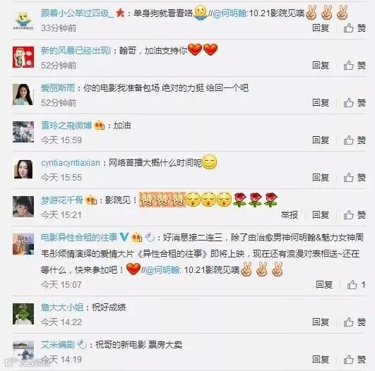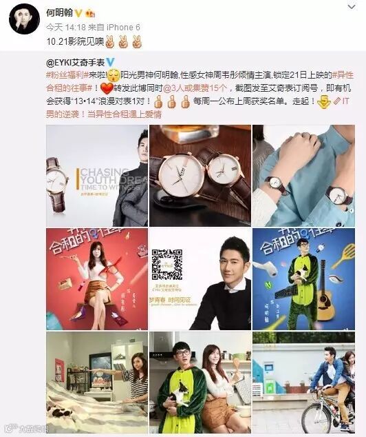 进入艾奇、何明翰或电影官方微博,