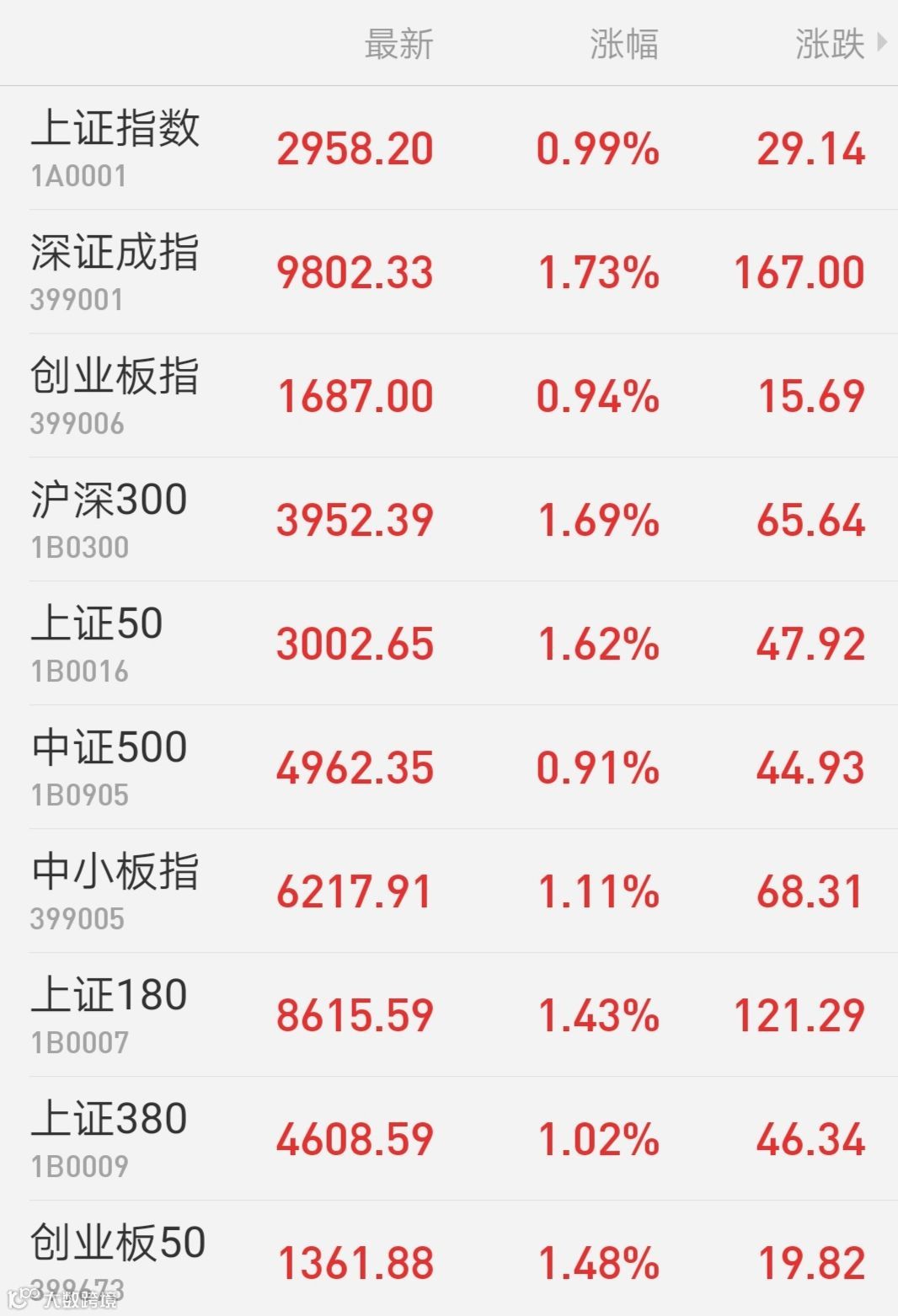 1、A股:上证指数收盘报2958.20点,涨0.99%,深成指涨1.73%,创业板指涨0.94%,万得全A涨1.34%,两市成交4348亿元。家电板块大放异彩,华帝股份等涨停。上周,上证指数涨0.11%,深成指涨1.47%,创业板指涨0.7%。
