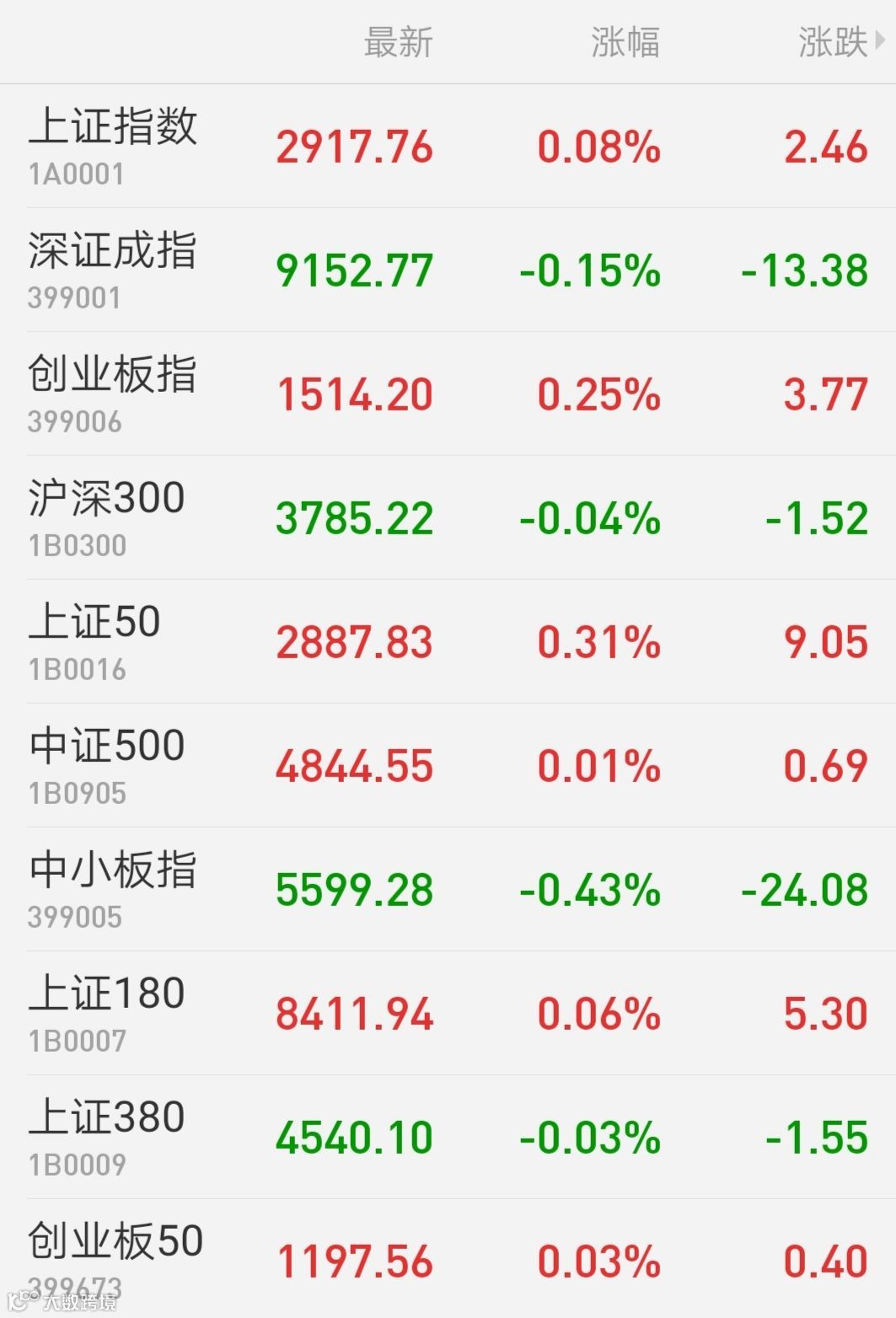 1、A股:上证综指冲高回落,收盘微涨0.08%报2917.76点,终结三连跌,近三日振幅不足1.3%;深证成指跌0.15%报9152.77点,创业板指涨0.25%报1514.2点,两市成交3485亿元,量能仍在地量徘徊。板块方面,黄金板块连续调整后大幅反弹,油服板块同样受期市影响表现不俗,医疗器械板块持续活跃表现;半导体板块领跌两市,白酒股小幅回调,知识产权、物联网、光刻胶等题材跌幅居前。