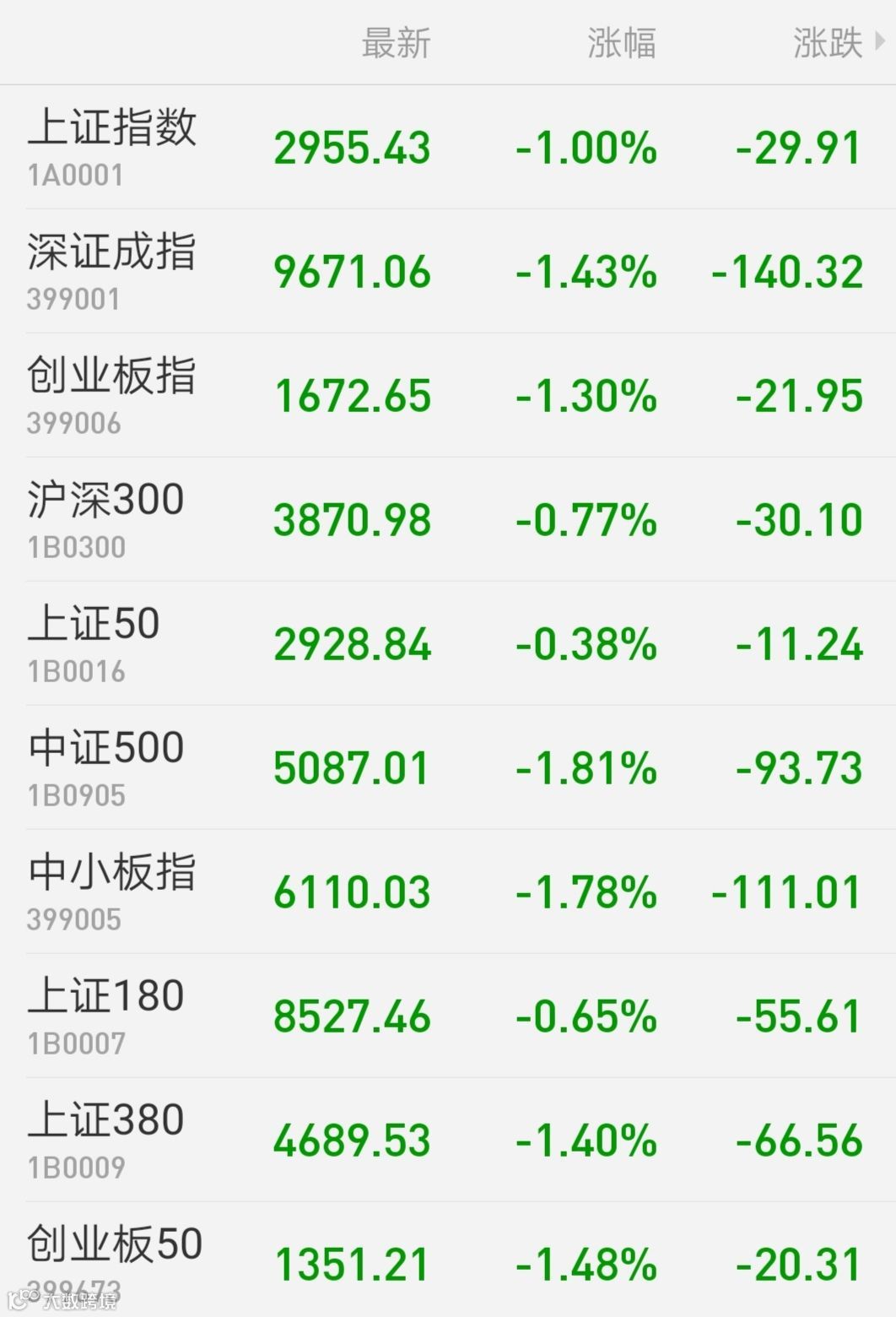 1、A股:科技板块深度调整,上证指数回补9月4日缺口收跌1%,报收2955.43点;深成指跌1.43%,报收9671.06点;创业板指跌1.3%,报收1672.65点。万得全A跌1.27%。两市成交额5258亿元,较上一交易日小幅缩小。北向资金逆势流入近5亿元。盘面上,板块绿盘居多,科技板块集体下挫,5G、软件、芯片纷纷大跌,东山精密跌停,中国软件、沪电股份等人气股大挫。在上涨板块中,数字货币概念股延续强势,奥马电器、金冠股份等多股涨停;小金属异动明显,天齐锂业封板;食品板块走强,来伊份封板;银行表现抗跌,平安银行涨近4%。