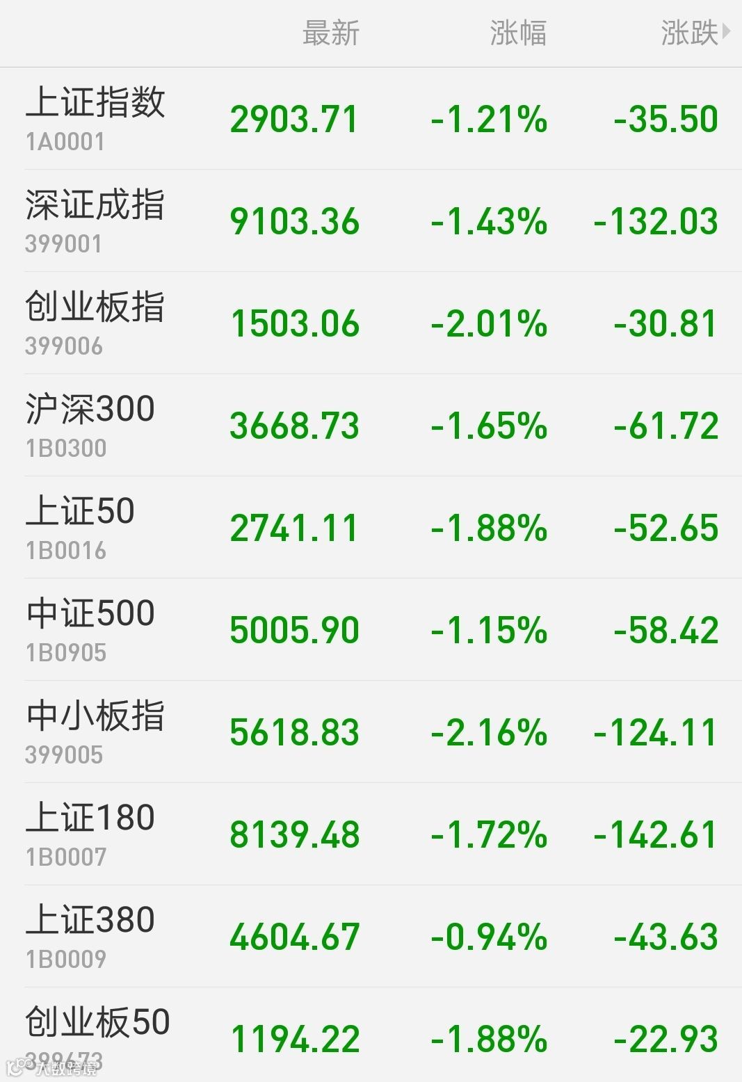 1、A股:A股全天弱势整理,白马股集体哑火。上证综指险守2900点,收盘跌1.21%报2903.71点;深证成指跌1.43%;创业板指跌2%;万得全A跌1.23%。两市成交4655亿元,较上日同期缩减两成。