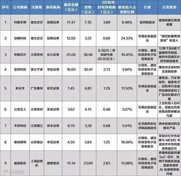 1、3月22日下午,上交所公布了首批受理的科创板申报企业名单,分别为晶晨半导体、睿创微纳、天奈科技、江苏北人、利元亨、宁波容百、和舰芯片、安瀚科技,武汉科前生物。从目前各方政策汇总的信息来看,上交所的审核时间预期明确,全程不超过9个月,即上交所审核不超过3个月、发行人和中介机构回复不超过3个月、中止审核期限不超过3个月,合计不超过9个月。
