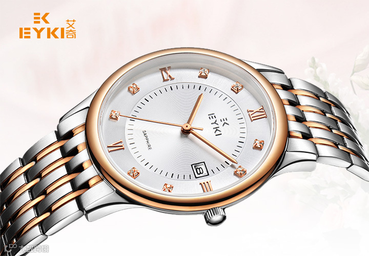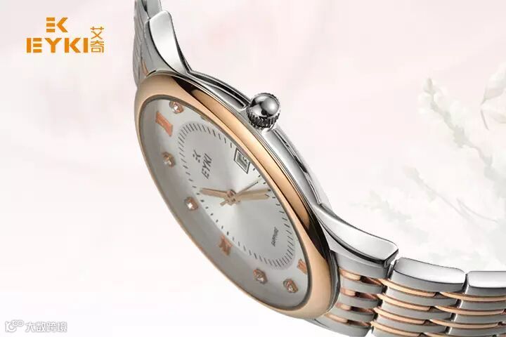 EELS8722L/S字面的太阳射线底纹,衬托出情侣间如火的热情。3点位日历显示清晰记录着每一个甜蜜的日子。刻度位晶石,粒粒经过精心打磨、镶刻,反射出钻石般的光彩。腕表的超薄设计,贴手、舒适,带来的感觉恰如热恋情侣轻松愉快的状态。