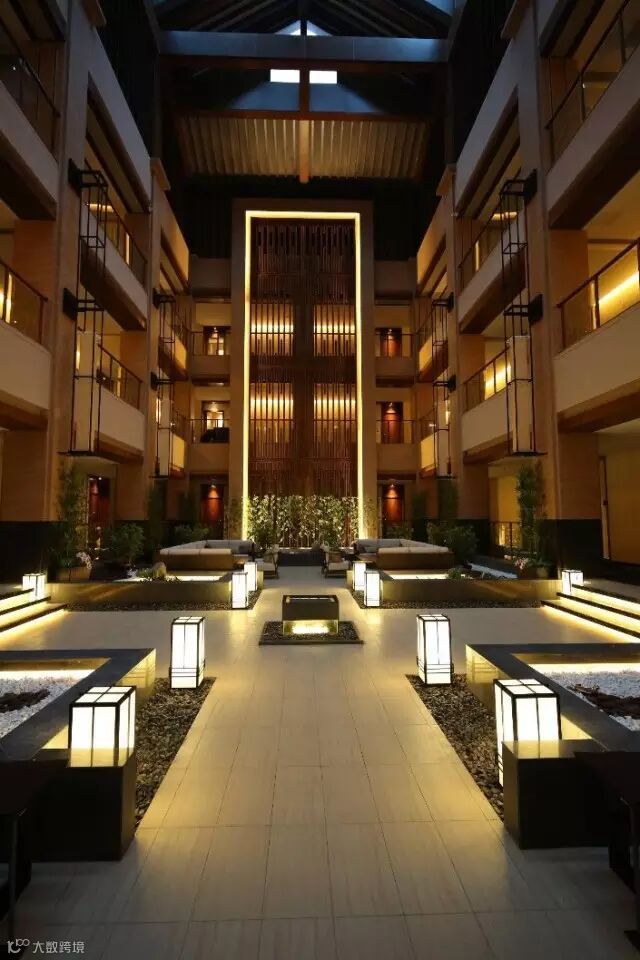 灯光设计也是整个酒店的亮点之处,白天给人一种鹤立鸡群、恢弘大气的品质感,到了晚上则是祥和、典雅、温馨的氛围。顾客既能享受温泉带来的舒适,又能像游玩景点般感受设计师用心营造的精美空间。