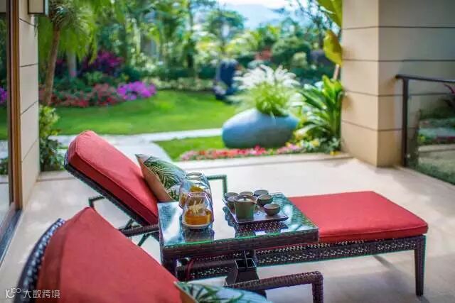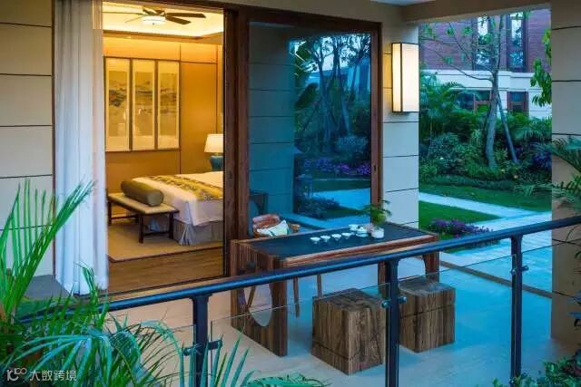 酒店旁的度假别墅依托建筑的基础,围绕酒店整体的度假风格,延伸出一种新的设计形式。