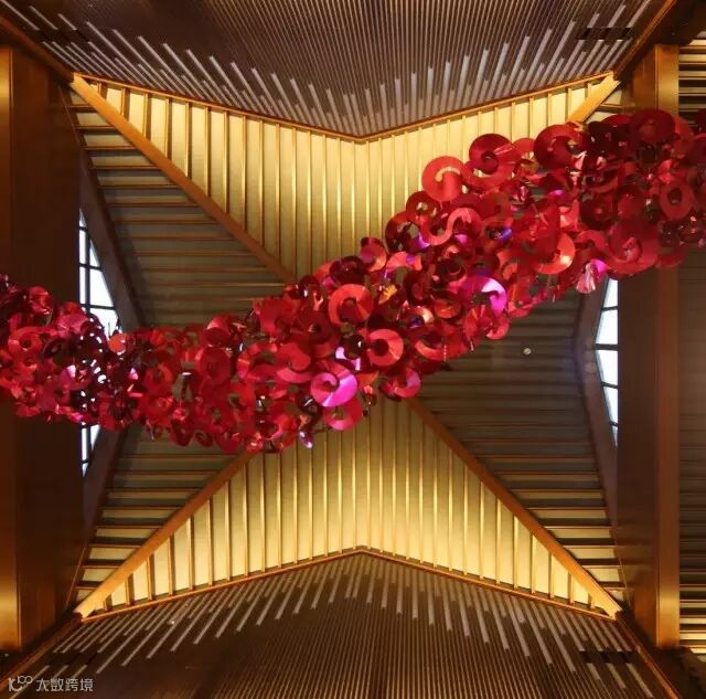本案以广东特有的“凤凰花”为设计灵感,美丽的凤凰花,花分为五瓣,花大似火,富丽堂皇,“叶如飞凰之羽,花若丹凤之冠”。设计运用大体量的红色灯具点亮整个空间,清风徐来,波浪不兴。