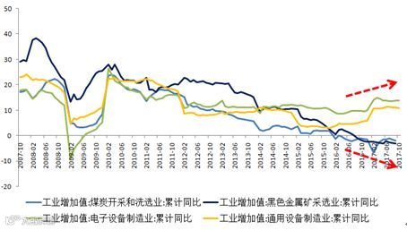 从2000 年以来,我国主要经历了5个主要的库存周期,每个周期时长35-40个月(基本符合基钦周期特点)。前3个库存周期处于经济上行时期或者经济高速增长时期,企业补库存阶段较长,而去库存阶段较短。自2011年以来是后两个周期,处于经济增长放缓时期,企业去库存阶段拉长,而补库存阶段缩短。从2016年下半年以来迎来了此轮库存周期的补库存阶段,但2017年三季度市场需求开始走弱,投资增速还会下降,之后可能进入新的去库存阶段。