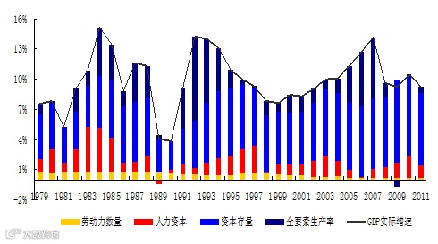 图8 1979-2011年中国经济增长要素拉动作用的分解