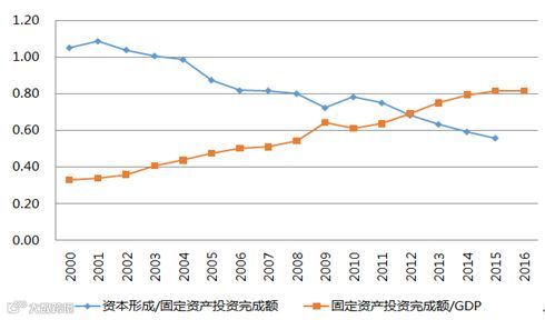 从投资占GDP的比重来看,增长空间不大。我国固定资产投资与GDP的比例逐年上升,2016年这一比重上升至80%,已经非常高。然而投资效率却在下降,目前资本形成总额占GDP的比重只有45%左右。