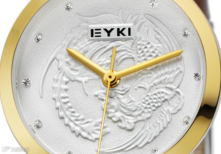 品赏腕表,精细工艺深深打动心灵。栩栩如生的龙凤雕刻工艺,非十数年功力不可实现,可谓腕表画龙点睛之笔。金色圈口打磨精细,光泽闪耀,动感迷人。金色表冠造型时尚、大气,恍若傲立的王者。进口小牛皮表带裁剪适中,薄而温软,极为贴手舒适。腕表处处体现用心之处,细节的完美成就了腕表的品质。