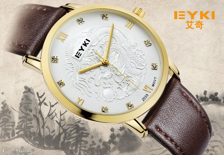 如果说龙凤是中国传统经典元素,那么代表富贵的金色无疑是最好的配搭。金色的表壳闪耀着金灿灿的光芒,在尊贵之中散发出休闲的意味;指针及3、6、9、12点刻度也是迷人的金色。金色构成了腕表的主色调,有重点,有细节,画面和谐,悦目怡人。更难得的是,腕表虽以金色为一大亮点,但绝不随意浓墨重彩,土气毕现,而是有节制,有布局,有品位,使传统经典和时尚休闲实现完美的融合。