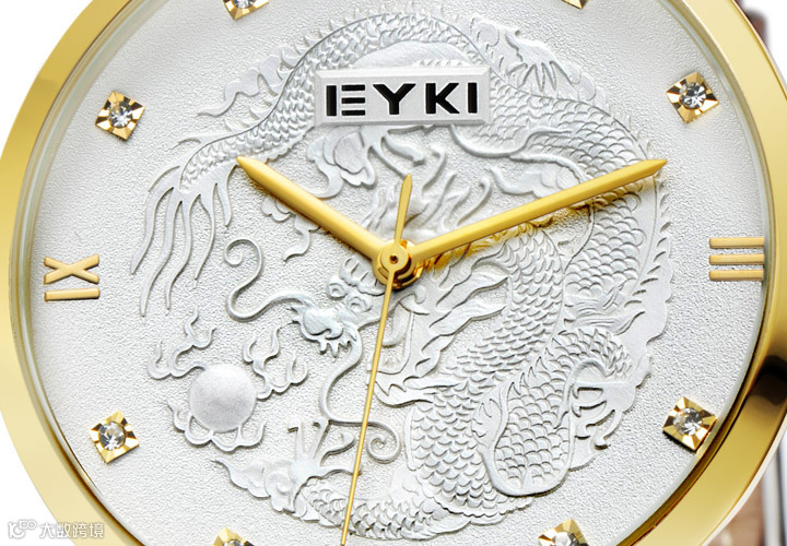 相信每个中国人对龙都怀有一种特殊的感情。吃的是“龙须面”,饮的是“龙井茶”。旅游要看“九龙壁”,求雨要去“龙王庙”。过节要耍龙舞,生肖属的也是龙……龙的影响波及到了文化的各个层面。EET8760男表字面展现了一条栩栩如生的中国龙,精雕细琢之下仿佛要脱表而出,让人观赏品味不可自止。神龙戏珠图案低调而又清晰地突显于表盘中,传达出浓淡适宜的中国传统意味,引发我们中华情结的共鸣。龙这一种中国的象征、民族的象征、文化的象征,在这里得到了完美的展现,诉说着我们的赤子之心和龙飞在天的豪气。