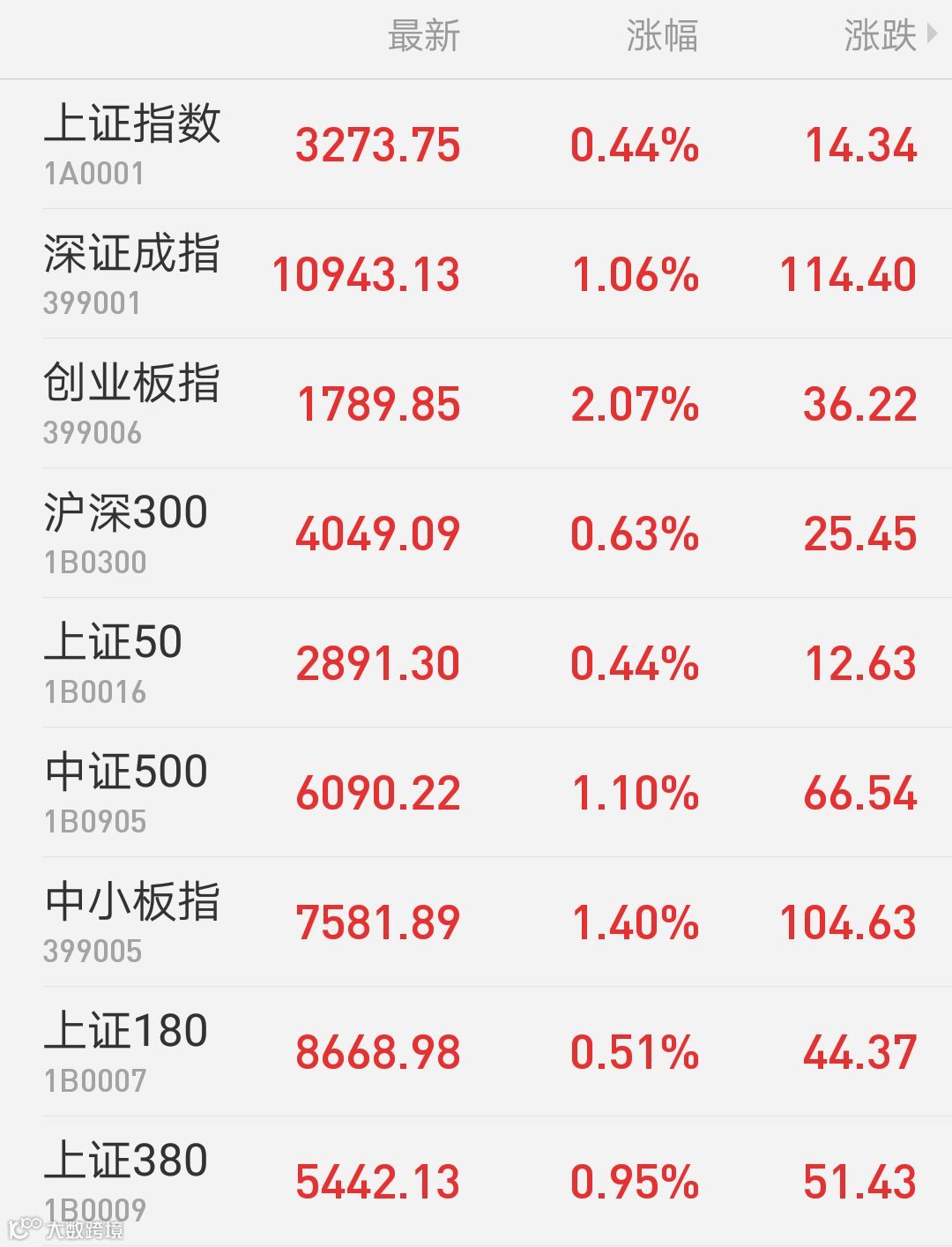 1、A股:上证指数报3273.75点,上涨0.44%,成交额1852.78亿。深证成指报10943.13点,上涨1.06%,成交额2472.36亿。创业板指报1789.85点,上涨2.07%,成交额821.23亿。两市合计成交4325.13亿。从盘面上看,软件服务、电子信息等板块涨幅居前。