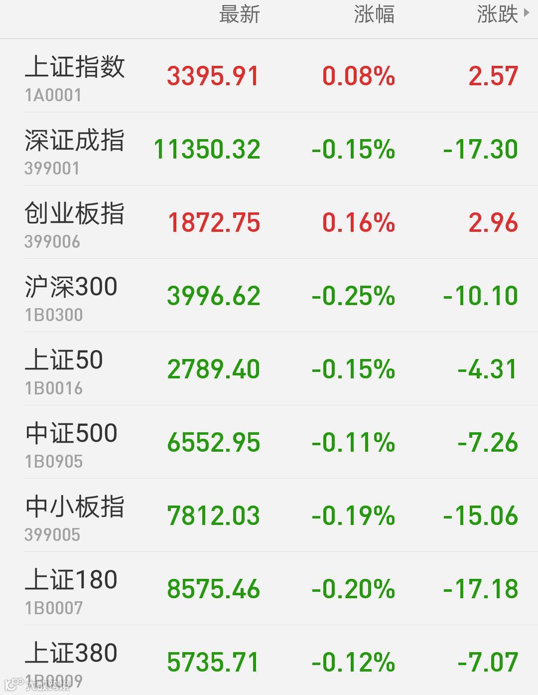 1、A股:上证指数报3395.91点,上涨0.08%,成交额2319.78亿。深证成指报11350.32点,下跌0.15%,成交额2498.66亿。创业板指报1872.75点,上涨0.16%,成交额724.80亿。两市合计成交4818.44亿。从盘面上看,专用设备、保险等板块涨幅居前。