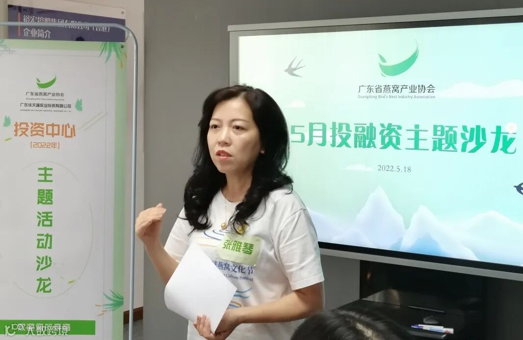 广东华天源实业投资有限公司的投资运营总监白雪介绍了举办本次主题活动初衷,是为了发挥燕窝产业协会平台的作用,发挥投资中心的职能作用,帮助会员企业开拓投融资业务知识的学习,解决会员企业在发展过程中遇到的与投融资相关的问题。