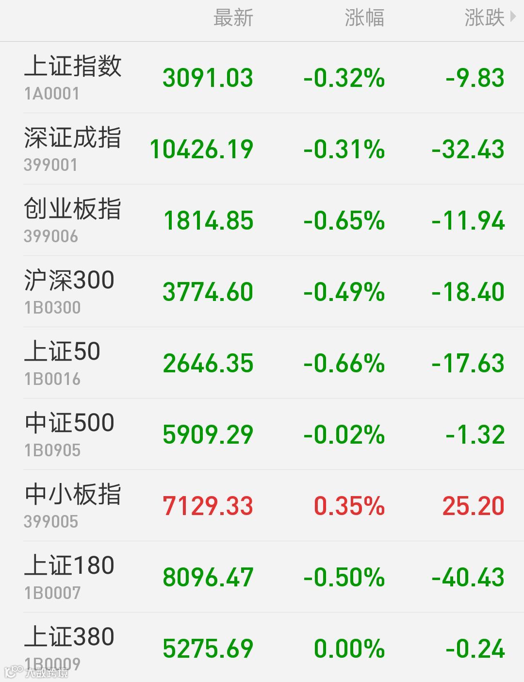1、A股:上证指数报3091.03点,下跌0.32%,成交额1484.36亿。深证成指报10426.19点,下跌0.31%,成交额2119.43亿。创业板指报1814.85点,下跌0.65%,成交额761.75亿。两市合计成交3603.79亿。从盘面上看,钛白粉、滨海新区等板块涨幅居前。