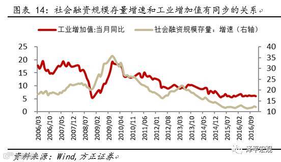 确认的关键指标是社会融资增速。社会融资规模存量增速和工业增加值有偏同步的关系。因此我们在跟踪到基建及贷款的相应拐点后,经济增长的拐点可能会在离社会融资规模存款增速的拐点不远的位置。