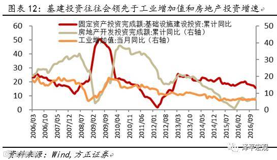 另外,因财政投放效率较高,基建投资往往会领先于工业增加值和房地产投资增速,而房地产投资需要经过“货币条件-房地产销售-房地产新开工-房地产投资”的较长链条的传导,因此房地产投资往往是最为滞后的指标。在实战上,“无风险利率”和“基建投资”往往给我们提供了更多先行借鉴意义。