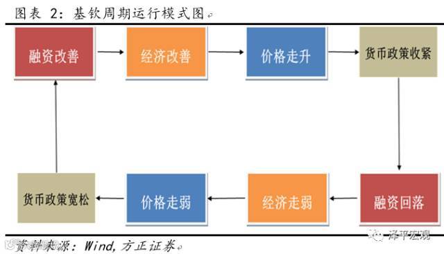 考虑到债券资产是有期限的,且大多数投资者会进行交易性投资,持有某只债券的时间不会太长,因此基钦周期(时长大概3.5年左右)的判断更为重要,基钦周期的运行模式如下。
