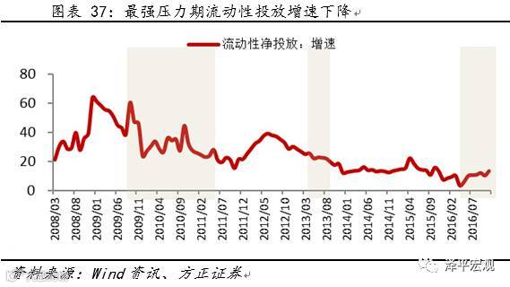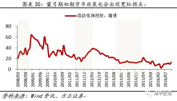 这段期间往往没有稳定的期限,是因为市场及政策对当前流动性及其风险的认知时间是不稳定的。包括对于政策来说,因为对这个阶段的还处于摸索期,加之经济下滑带来的稳增长压力增加,因此甚至可能会在这个阶段出现短时的投放加速,如2010年1月-2010年10月、2016年6月至今。