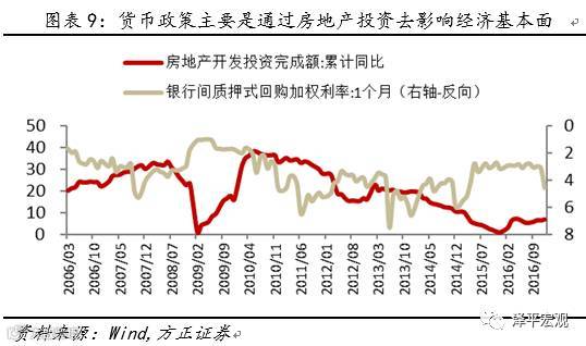 除了财政政策的一并贡献外,货币政策主要是通过房地产投资去影响经济基本面的。财政投放带来的基建投资以及货币宽松带来的房地产投资所形成的周期性波动,是经济短周期波动的主要决定力量。