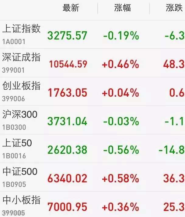 1、A股:上证综指全天围绕5日线整固,缩量收跌0.19%报3275.57点;深成指涨0.46%报10544.59点;创业板翻红,涨0.04%报1763.05点,龙头股赢时胜尾盘几乎涨停,该股半个月涨六成。两市成交4973亿元,上日为5270亿。
