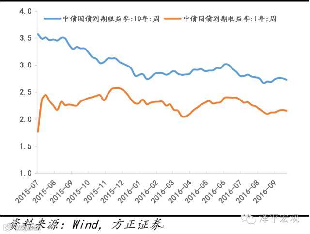 图表5:1年期和10年期国债收益率