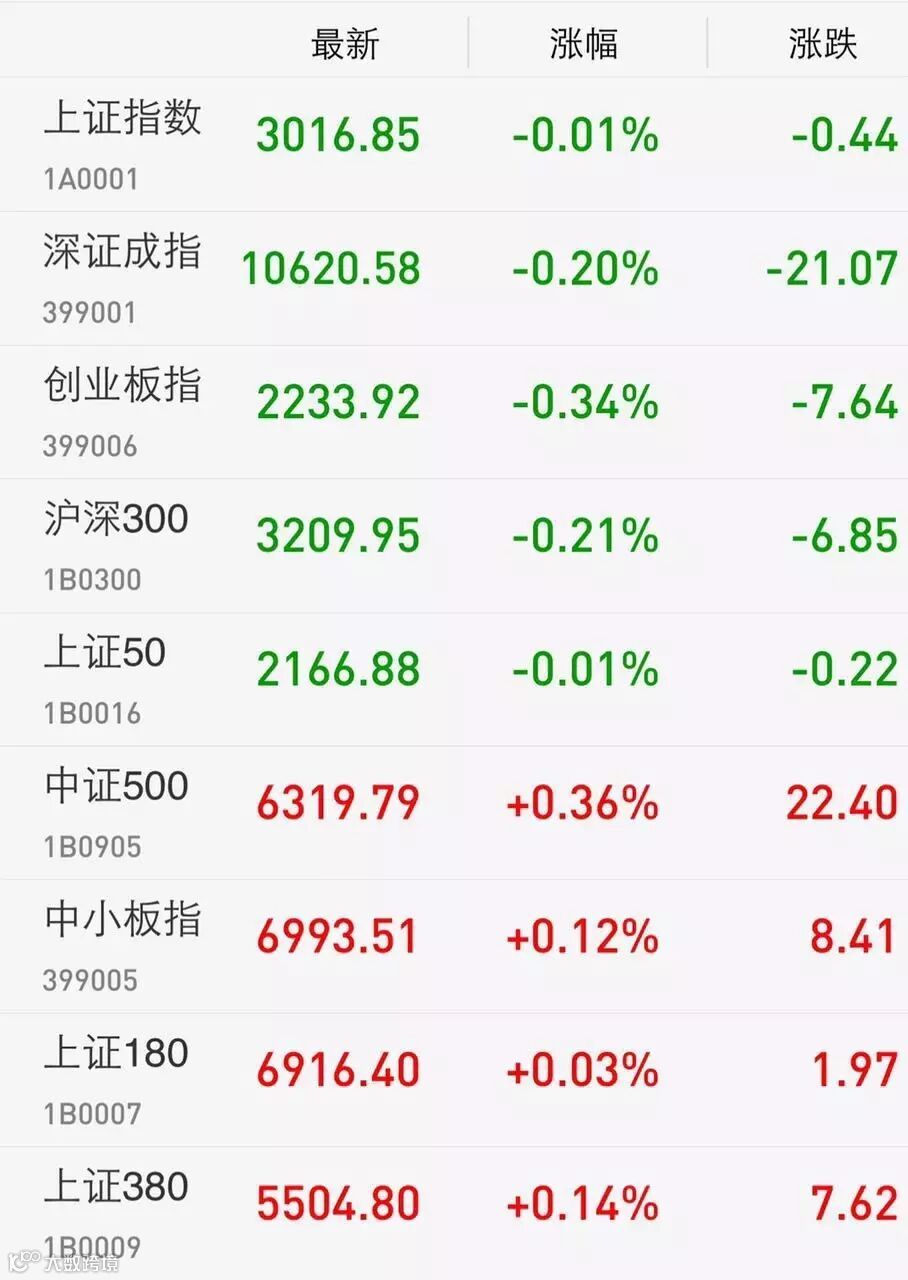 3、美股:标普500指数收跌1.83点,跌幅0.09%,报2097.90点。道指收跌22.74点,跌幅0.13%,报17895.88点。纳指收涨17.65点,涨幅0.36%,报4876.81点。