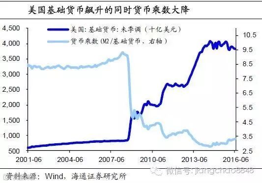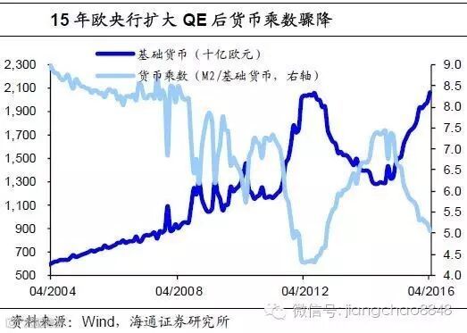 美国、日本、欧元区的例子也从侧面说明了,仅仅靠中央银行的货币刺激并不一定带来经济和通胀的反弹,尤其是经济体中出现严重结构性问题时,货币刺激更加无效:基础货币增加的效果被货币乘数或货币流通速度下降所冲销。
