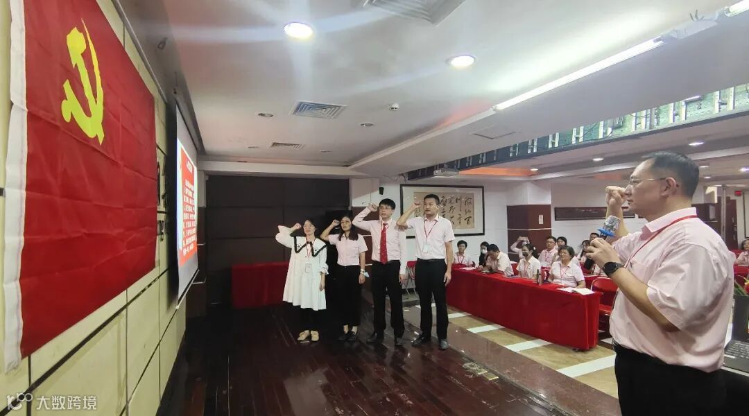 ▲ 图 ∣ 书记带领预备党员宣誓并佩戴党徽
