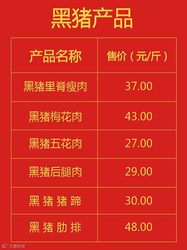 1、海岛福猪黑猪系列产品以海南地方黑猪血统为主,全身被毛黑亮,四肢健壮,腿臀较丰满,体质结实,结构匀称。