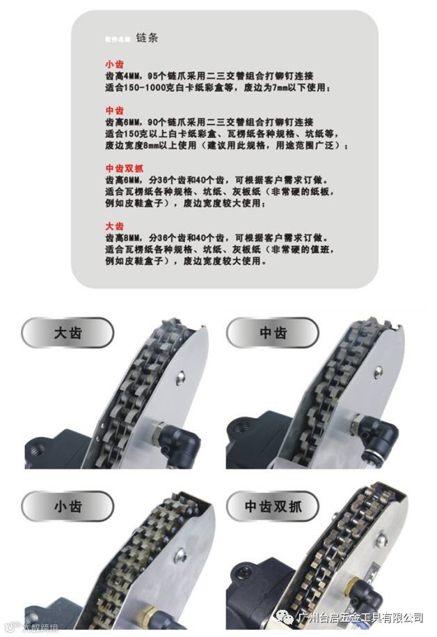 中齿适合150克以上白卡纸彩盒、废边宽度8mm以上使用(建议此规格)